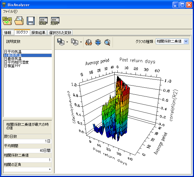 生産に関係する要因と影響期間の解析プログラム BixAnalyzer BIX-ppで記述された毎日の生産量と各要因について、平均期間を変えながら相関解析するプログラムです。βバージョンです。MS VB.Netで開発されています。Setup.exeでパソコンにインストールしてご使用ください。ご使用の環境によって、実行には、MS .Net Frameworkが必要になります。インストールの指示に従って、ダウンロードしてください。 |