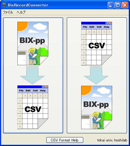 生産データ変換プログラム BixRecordsConverter CSV(カンマ区切り形式)で記述された環境計測データ、生育計測データ、画像データ、音声データ、作業データをBIX-pp形式に変換します。また、BIX-pp形式のこれらのデータをcsv形式にも変換できます。Java言語及びEclipseで開発されています。実行には、Java softwareが必要になります。実行形式JARファイルを実行してください。 |