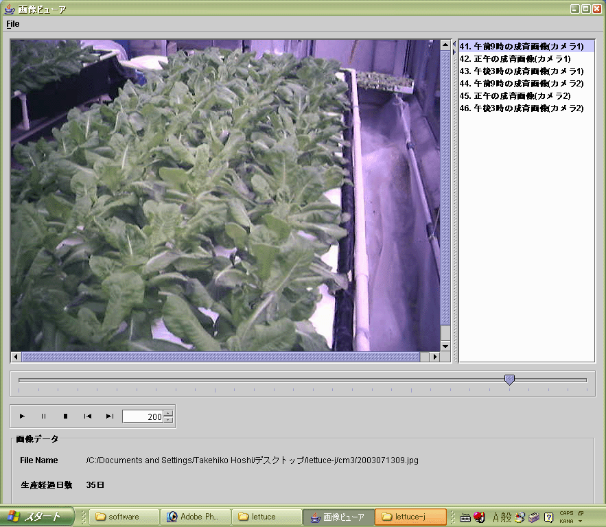 画像ビューワー 記録されている画像を見ることができます。連続生育画像ならば動画のように再生できます。Eclipseで開発されています。実行には、Java softwareが必要になります。実行形式JARファイルを実行してください。 |