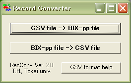 生産データ変換プログラム BixRecordsConverter CSV(カンマ区切り形式)で記述された環境計測データ、生育計測データ、画像データ、音声データ、作業データをBIX-pp形式に変換します。また、BIX-pp形式のこれらのデータをcsv形式にも変換できます。MS VB.Netで開発されています。Setup.exeでパソコンにインストールしてご使用ください。ご使用の環境によって、実行には、MS .Net Frameworkが必要になります。インストールの指示に従って、ダウンロードしてください。 |